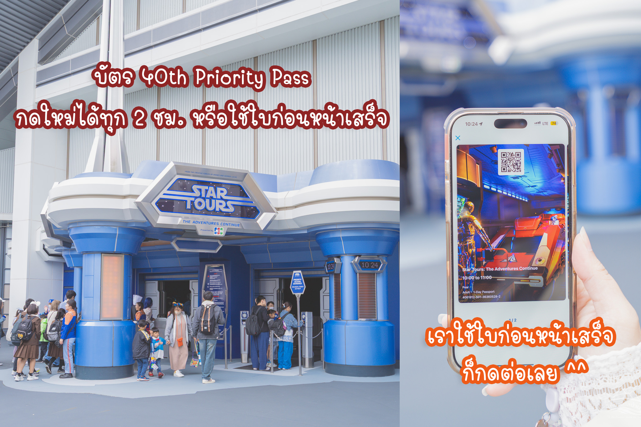 หน้าตัวอย่างบัตร 40th Priority Pass เราไปกดใช้กับเครื่องเล่น Star Tours