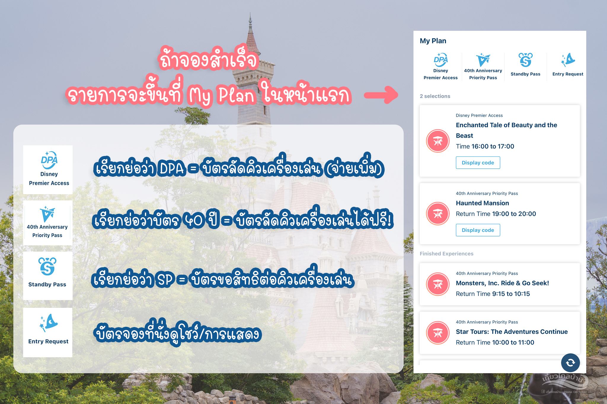 - Disney Premier Access (DPA) 🎟️ คือบัตรลัดคิวเครื่องเล่น ต้องซื้อเพิ่มผ่านแอปดิสนีย์